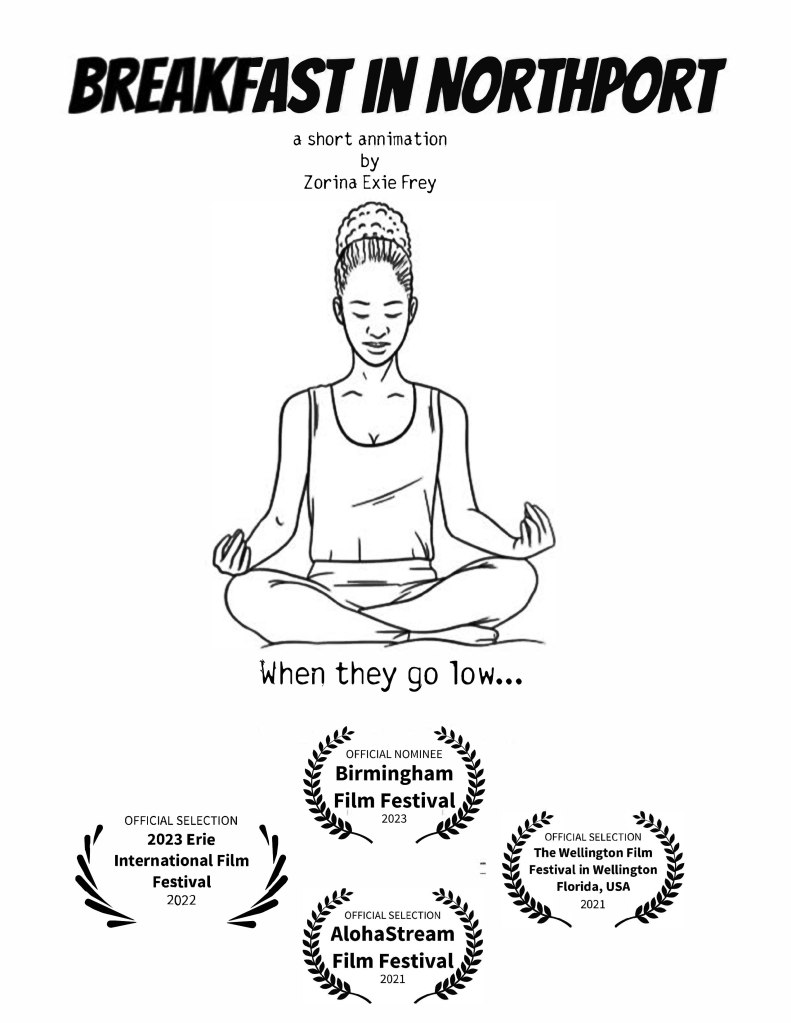 The poem, “Breakfast in Northport” has found new life in animation. The monochromatic short film or short has been circulating the film festivals and has been selected at The Wellington Film Festival, AlohaStream Film Festival, and Erie International Film Festival.